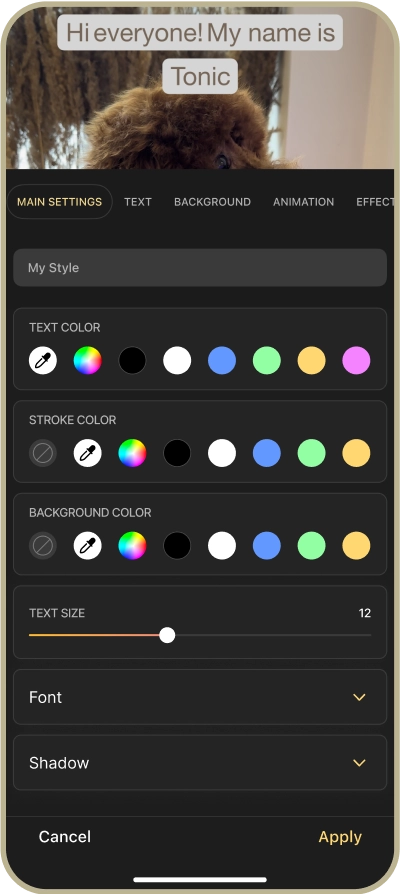 User interviews showed a preference for font customization and shadows, so I added these options.