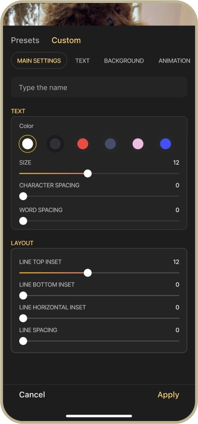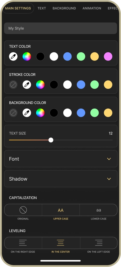 We found that users were confused by the filter creation process. To simplify it, I streamlined the Main tab settings, grouping all text color settings together. This allowed users to pick colors directly from the video, delete stroke and background colors, and use a color wheel for precision. Previously, only one text color setting was available.